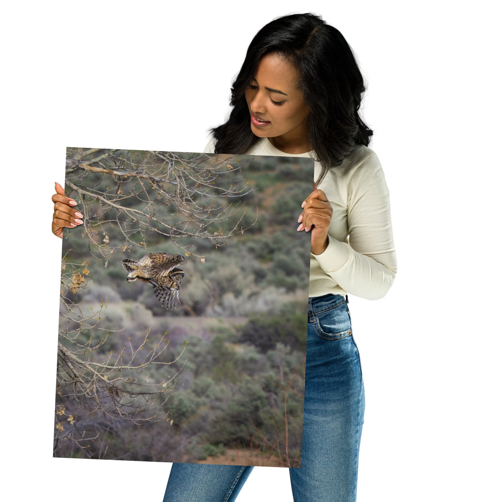 Shop › Great Horned Owl 16x20" Premium Luster Photo Paper Poster Image 1 of 5 Image 2 of 5 Image 3 of 5 Image 4 of 5 Image 5 of 5 Great Horned Owl 16x20" Premium Luster Photo Paper Poster $48.50 This poster has a partly glossy, partly matte finish and it'll add a touch of sophistication to any room. • 10 mil (0.25 mm) thick • Slightly glossy • Fingerprint resistant • Paper sourced from Japan Add To Cart Added! This poster has a partly glossy, partly matte finish and it'll add a touch of sophistication to any room. • 10 mil (0.25 mm) thick • Slightly glossy • Fingerprint resistant • Paper sourced from Japan